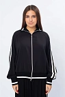 Современный блейзер свободного кроя, сочетающий в себе элементы классики и спортивного стиля. Модель выполнена в лаконичном чёрном цвете, что делает её универсальной для повседневных и casual-образов.