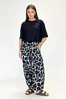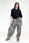 Сочетание яркого принта и свободного кроя делает брюки главной вещью в образе.