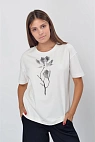 Футболка подойдёт для летнего сезона и теплых дней. Принт в виде цветка придаёт ей особый шарм.