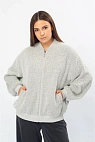 Женский жакет свободного кроя с застёжкой на молнию и округлым воротом. Выполнен из мягкого, фактурного материала с деликатным узором, приятного к телу и уютного в носке.